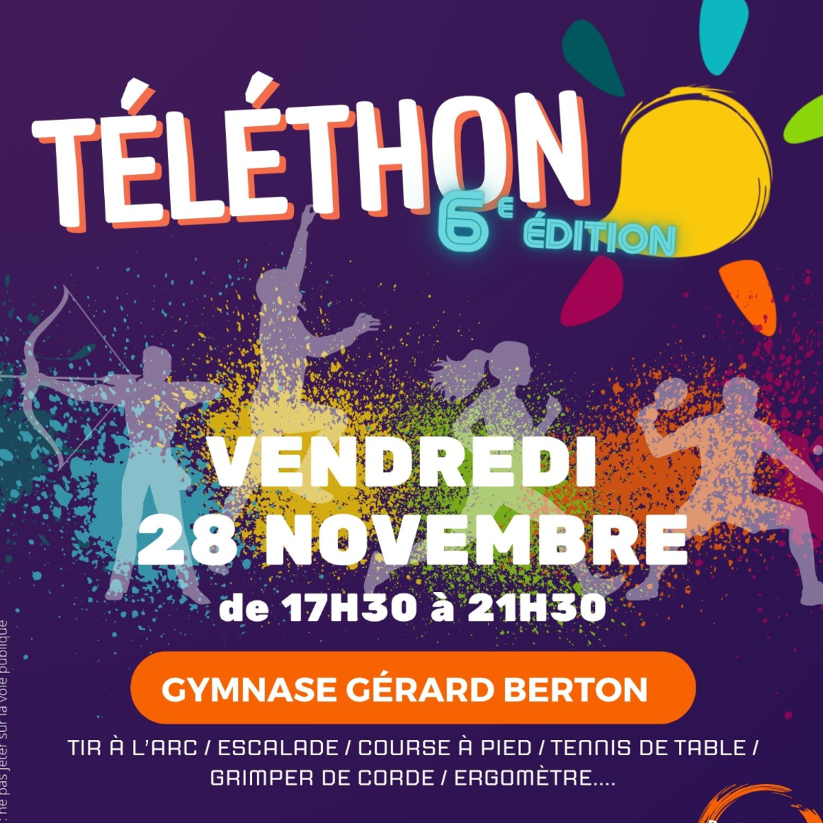 𝐓𝐄́𝐋𝐄́𝐓𝐇𝐎𝐍 𝟐𝟎𝟐𝟓 | Le Téléthon est de retour pour une 𝟔𝐞̀𝐦𝐞 𝐞́𝐝𝐢𝐭𝐢𝐨𝐧 𝐥𝐞 𝐯𝐞𝐧𝐝𝐫𝐞𝐝𝐢 𝟐𝟖 𝐧𝐨𝐯𝐞𝐦𝐛𝐫𝐞 𝟐𝟎𝟐𝟓 au gymnase Gérard Berton et à la halle couverte. Organisé par la Municipalité et le Pôle Jeunesse et Sport Saint Just