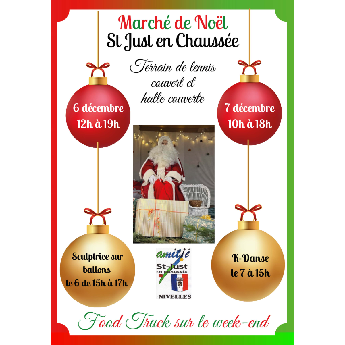 𝐌𝐚𝐫𝐜𝐡𝐞́ 𝐝𝐞 𝐍𝐨𝐞̈𝐥 | Le marché de Noël de Saint Just en Chaussée, organisé par l’association Amitiés St Just Nivelles, se déroulera le 𝐰𝐞𝐞𝐤-𝐞𝐧𝐝 𝐝𝐮 𝟔 𝐞𝐭 𝟕 𝐝𝐞́𝐜𝐞𝐦𝐛𝐫𝐞 𝐚𝐮 𝐭𝐞𝐧𝐧𝐢𝐬 𝐜𝐨𝐮𝐯𝐞𝐫𝐭 𝐞𝐭 𝐚̀ 𝐥𝐚 𝐡𝐚𝐥𝐥𝐞 𝐜𝐨𝐮𝐯𝐞𝐫𝐭𝐞