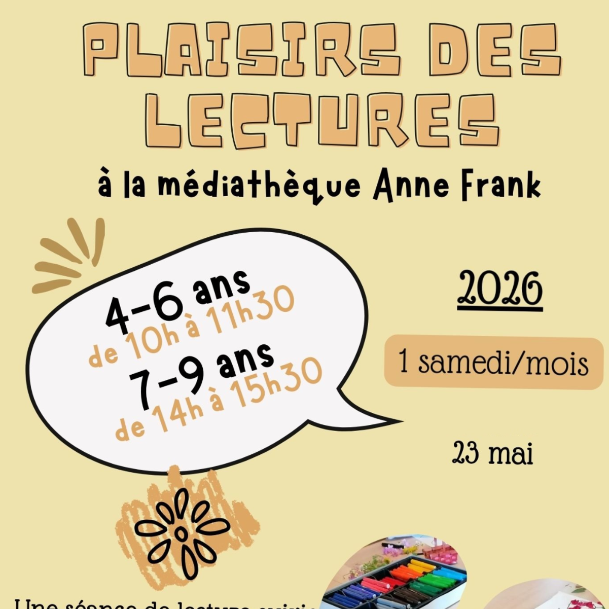 𝗠𝗲́𝗱𝗶𝗮𝘁𝗵𝗲̀𝗾𝘂𝗲 𝗔𝗻𝗻𝗲 𝗙𝗿𝗮𝗻𝗸 | Séance des plaisirs des lectures et ateliers créatifs pour les enfants de 4 à 6 ans de 10h00 à 11h30 et les enfants de 7 à 9 ans de 14h00 à 15h30, le 𝘀𝗮𝗺𝗲𝗱𝗶 𝟮𝟯 𝗺𝗮𝗶 à la Médiathèque Anne Frank