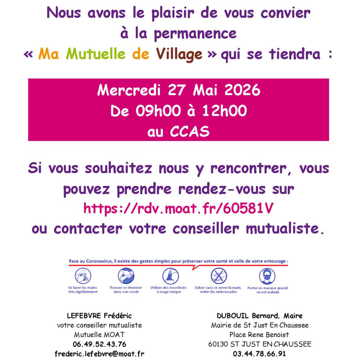 𝗖𝗖𝗔𝗦 | Une permanence « Ma mutuelle de Village » aura lieu le 𝗺𝗲𝗿𝗰𝗿𝗲𝗱𝗶 𝟮𝟳 𝗺𝗮𝗶 prochain de 𝟬𝟵𝗵𝟬𝟬 𝗮̀ 𝟭𝟮𝗵𝟬𝟬 au CCAS.